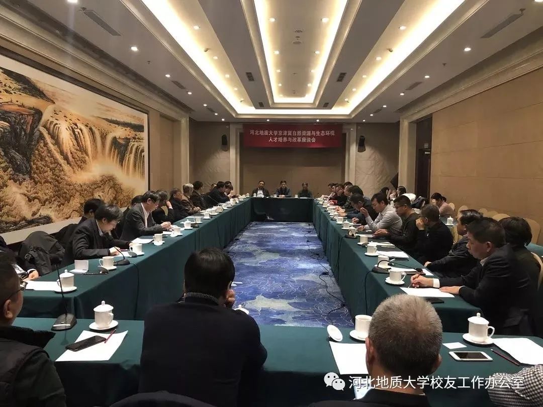 2019年1月26日,bat365正版唯一官网“京津冀自然资源与生态环境人才培养与改革” 座谈会在北京召开。到会嘉宾有中国科学院院士、bat365官网名誉校长李廷栋,中国科学院院士、bat365官网特聘教授刘嘉麒,古生物学家、bat365官网特聘教授季强,bat365官网杰出校友,中国工程院院士武强、毛景文、中国科学院院士侯增谦、李四光地质科学奖获得者张宏、“张衡一号”卫星工程首席科学家申旭辉、“松科二井”工程总指挥张金昌以及各行各业取得优异成绩的杰出校友。图为会议现场。