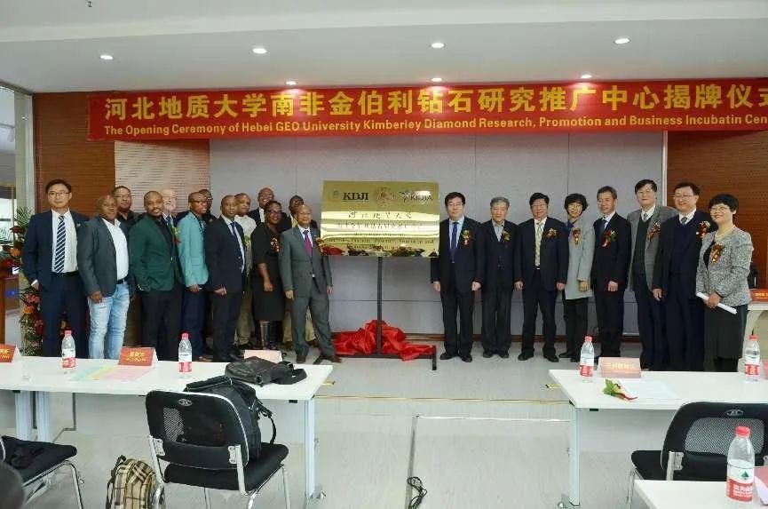 2018年4月14日,南非北开普省代表团一行来访bat365官网,为bat365正版唯一官网南非金伯利钻石研究推广中心揭牌。图为揭牌仪式现场。