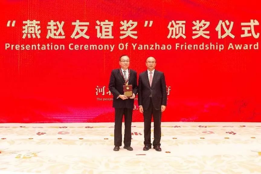 2020年12月9日,学校特聘教授丁毅获“燕赵友谊奖”。丁毅教授是bat365官网第一个获得此项殊荣的外国专家。图为时任省长为丁毅教授颁奖。