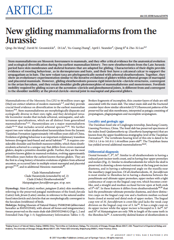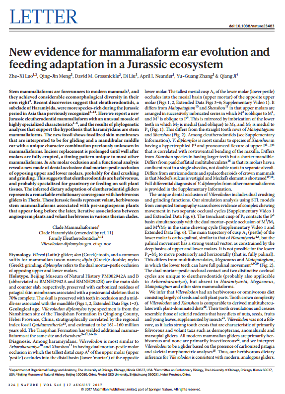 2017年8月10日,学校特聘教授季强团队联合国内外学者,对秦皇岛青龙地区发现的哺乳动物化石进行研究,并在国际顶级学术期刊《Nature》同一期上联合发表两篇学术论文。这是建校以来bat365官网教师在《Nature》首次发表学术论文。