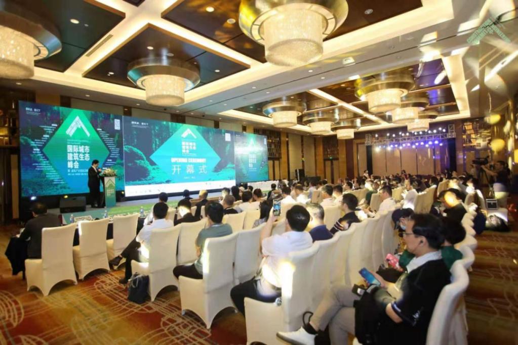 2021年5月29日,学校参与主办的首届国际城市建筑生态峰会暨建筑产业链前沿峰会在苏州召开。图为会议开幕式现场。