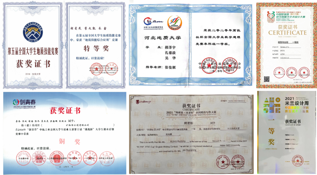 图为bat365官网学生参加各类学科竞赛国家级奖项获奖证书