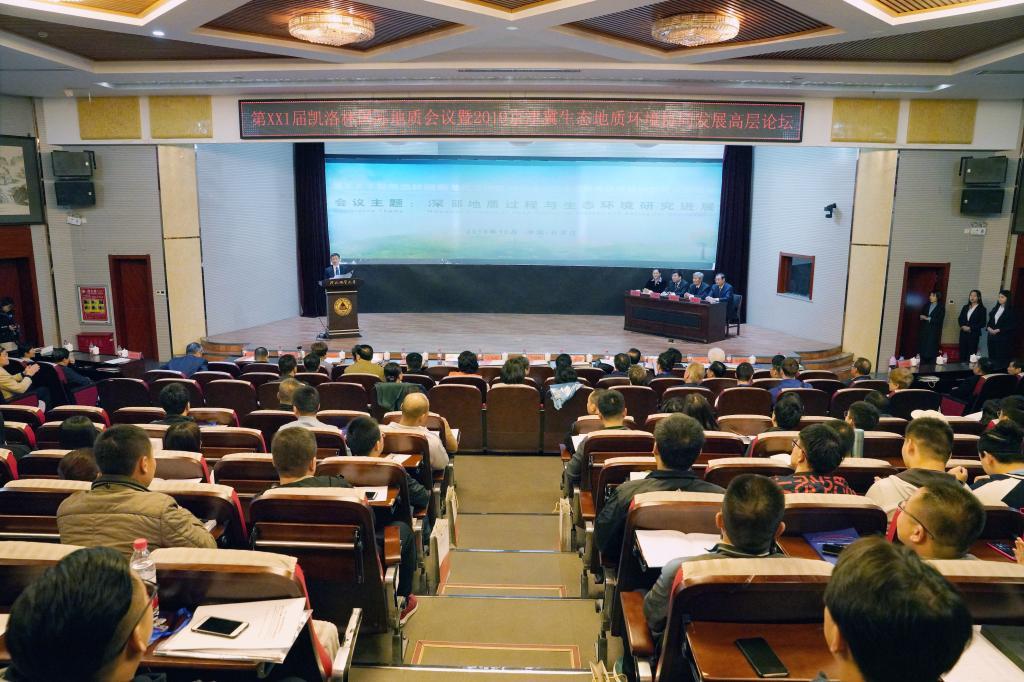 2019年10月25日,学校主办的第ⅩⅩⅠ届凯洛林国际地质会议暨2019京津冀生态地质环境协同发展高层论坛在石家庄召开。图为论坛现场。