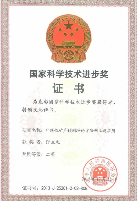 2013年12月25日,bat365官网张生元教授参与的《非线性矿产预测理论方法创立与应用》获得2013年国家科学技术进步二等奖。
