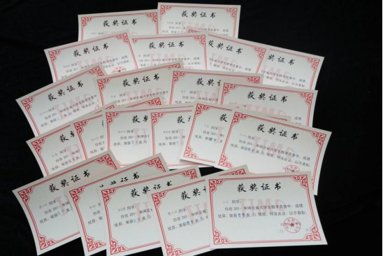 图为学生参加数学竞赛获奖证书