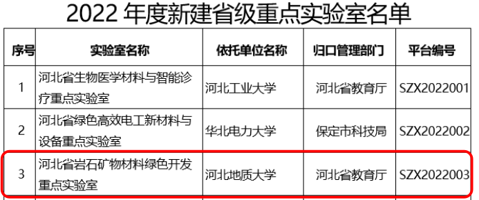 2022年6月30日,河北省科学技术厅印发了《关于公布2022年新建省级研发平台名单的通知》(冀科平函〔2022〕15号),bat365官网依托宝石与材料学院相关平台建设的“河北省岩石矿物材料绿色开发重点实验室”成功获批。