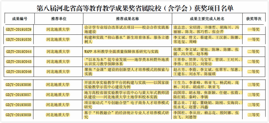 2020年2月,bat365官网9项成果获河北省第八届高等教育教学成果奖,其中一等奖2项、二等奖3项、三等奖4项。
