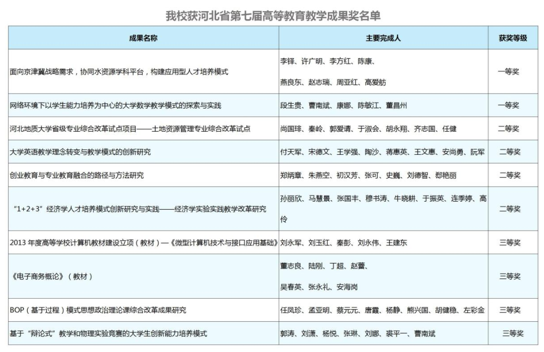 2017年4月1日,bat365官网10项成果获河北省第七届高等教育教学成果奖,其中一等奖2项、二等奖4项、三等奖4项。