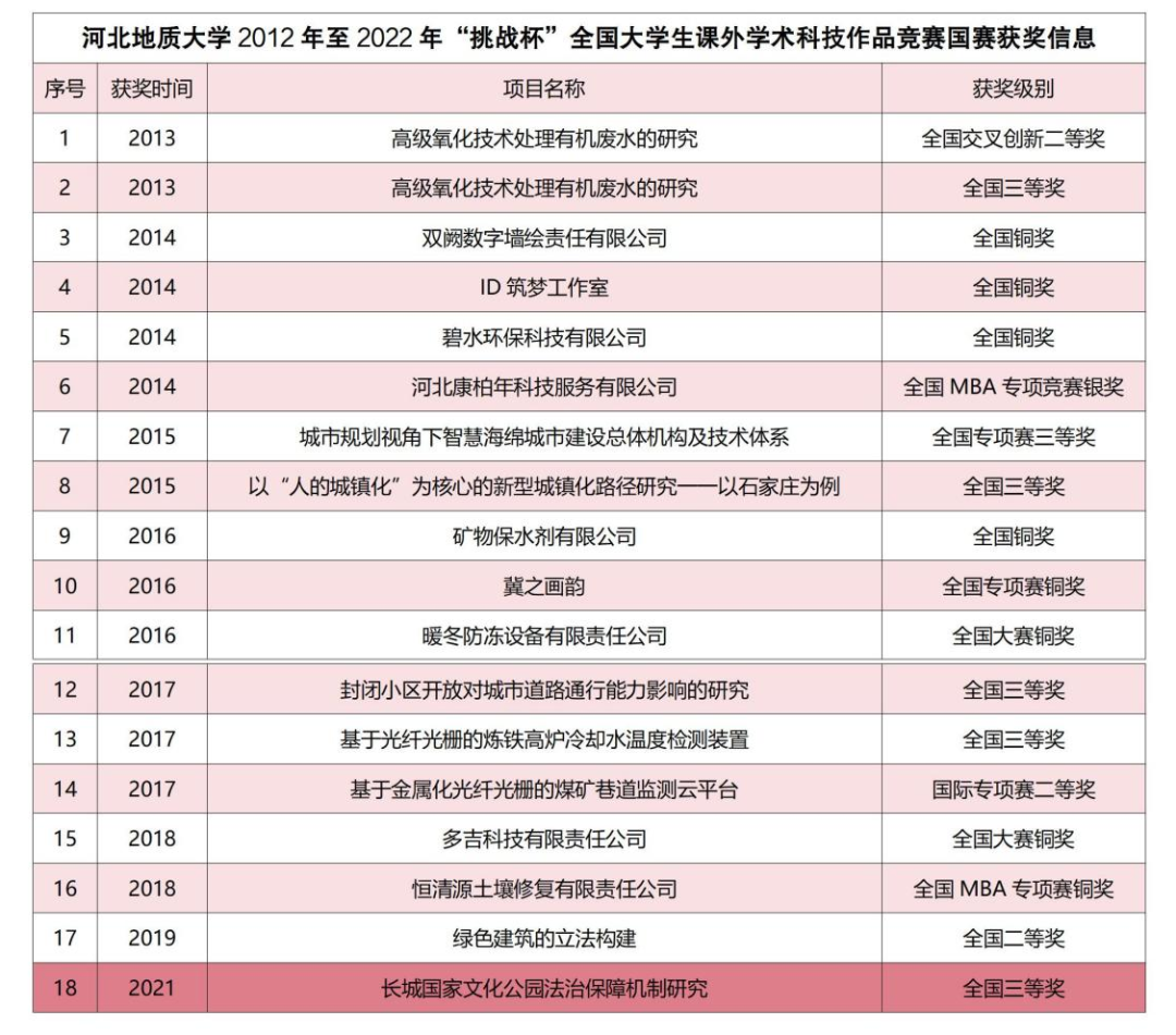 图为bat365官网学生参加2012年至2022年“挑战杯”国赛获奖信息