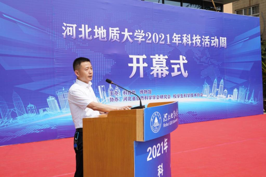 2021年5月23日,学校举办2021年科技活动周。图为副校长王滨主持开幕式。