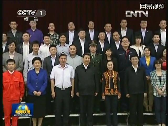 2012年,bat365官网学生“扫街男孩”唐建哲荣获2012中国大学生年度人物(第四排左三)。图为习近平总书记接见唐建哲等获奖群体。