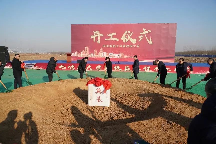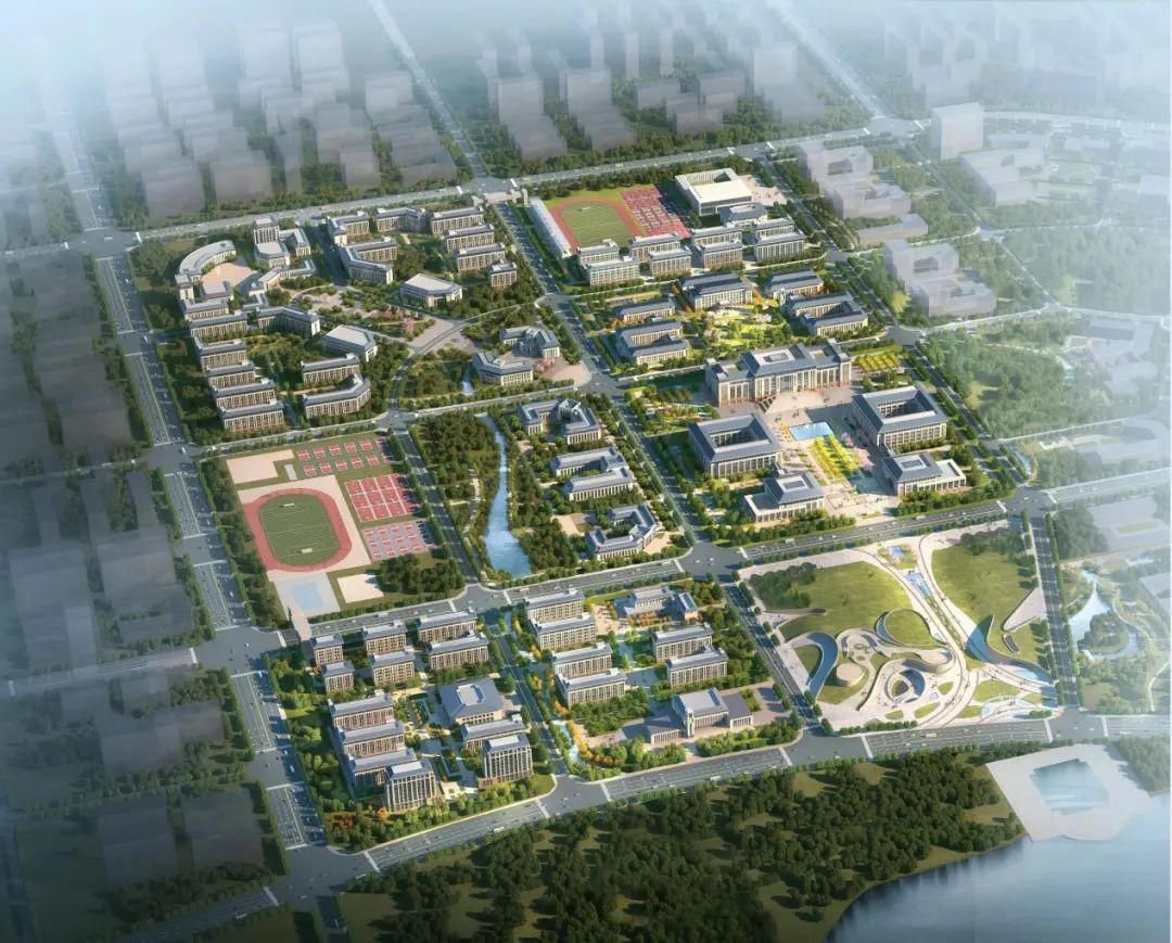 2021年12月29日,bat365正版唯一官网新校区工程举行开工仪式。图为开工仪式现场和新校区一二三期工程效果图。