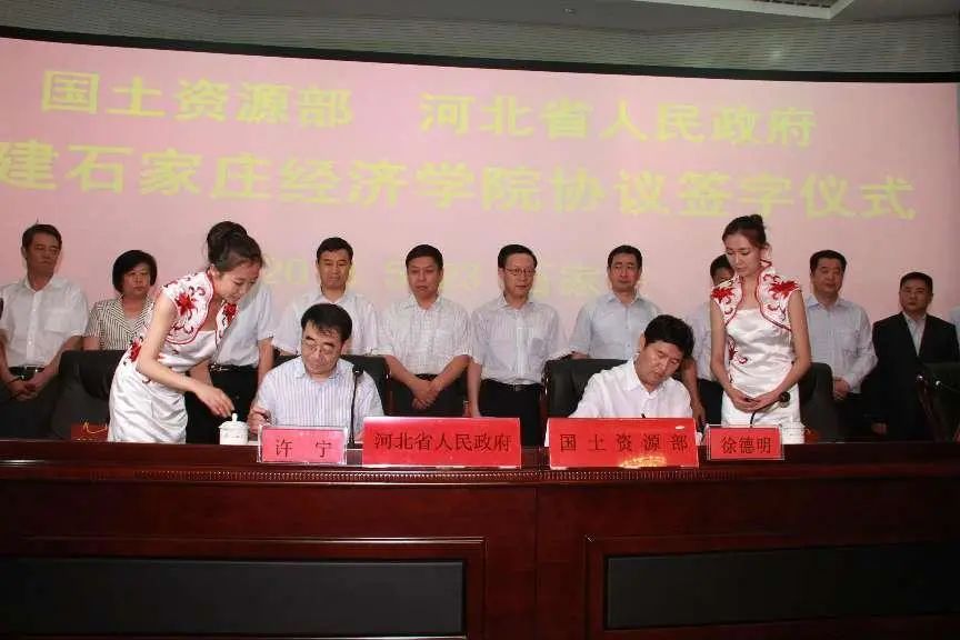 2013年5月23日,国土资源部、河北省人民政府共建石家庄经济学院协议签字仪式在石家庄经济学院春秋讲堂隆重举行。