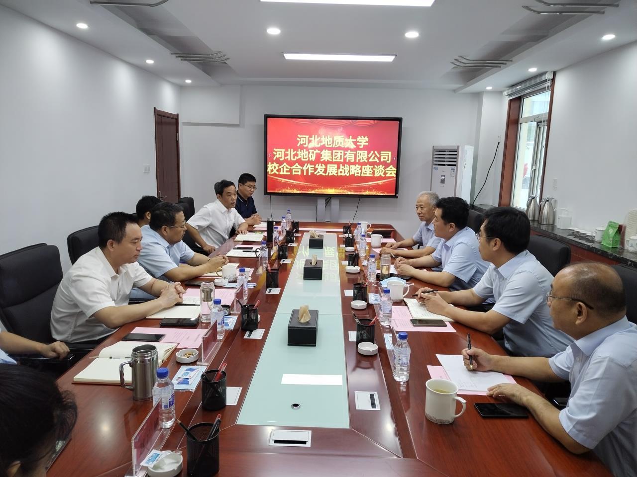 为深入贯彻落实省委十届二次全会精神,全面推动校企合作发展战略,7月19日,校长和志强带队到河北地矿集团有限公司进行交流座谈。河北地矿集团有限公司党委书记、董事长何宇青,党委副书记、总经理刘庆民等集团领导,bat365官网副校长赵永强出席座谈会。
