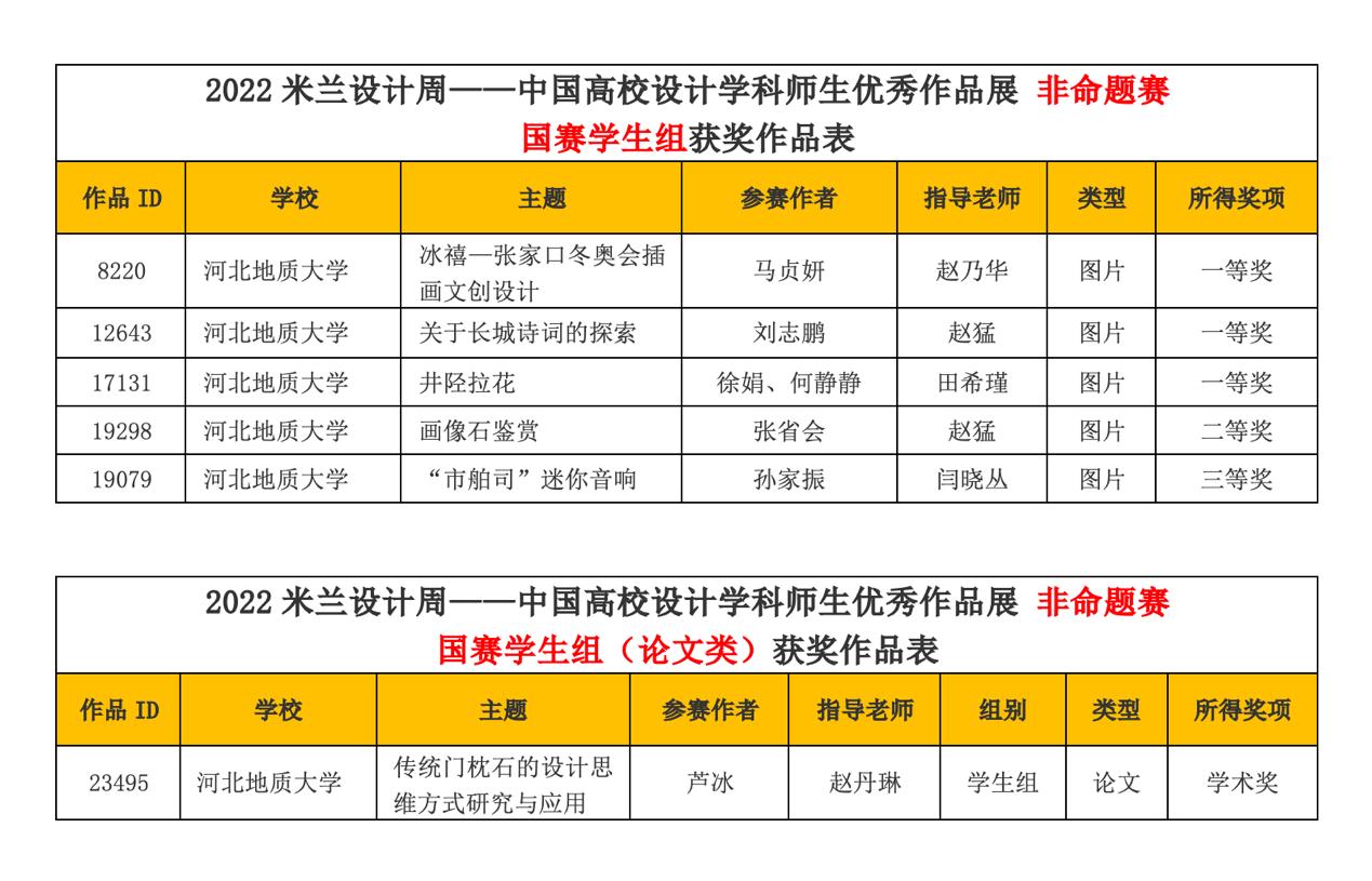 大赛获奖作品表