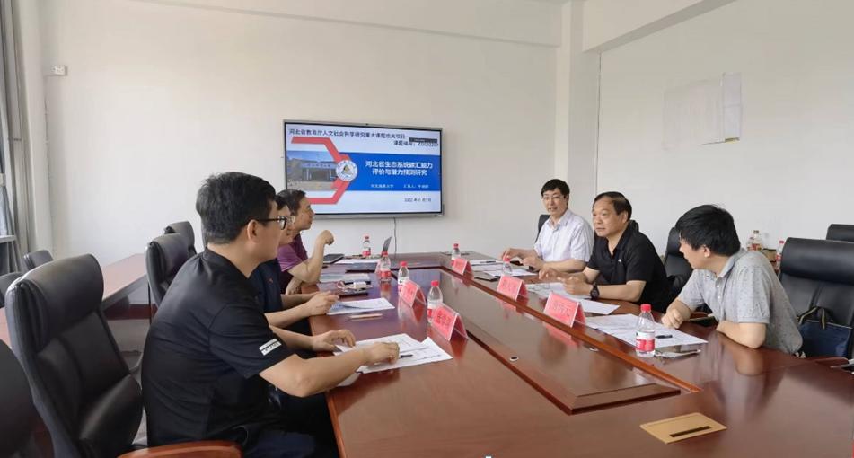 2022年bat365官网成功获批两项河北省教育厅人文社会科学研究重大课题攻关项目,分别为“河北防范政府债务风险事件爆发的制度约束机制研究”和“河北省生态系统碳汇能力评价与潜力预测研究”。根据项目立项通知要求,项目组于6月9日上午组织召开项目开题报告会,进一步对项目研究内容及方案进行研讨。河北省教育厅科技处副处长一级调研员刘树船、bat365正版唯一官网副校长王滨、项目组首席专家王凤鸣教授、陈安国教授及部分项目组人员参加了此次会议,会议由科技处处长董志良主持。