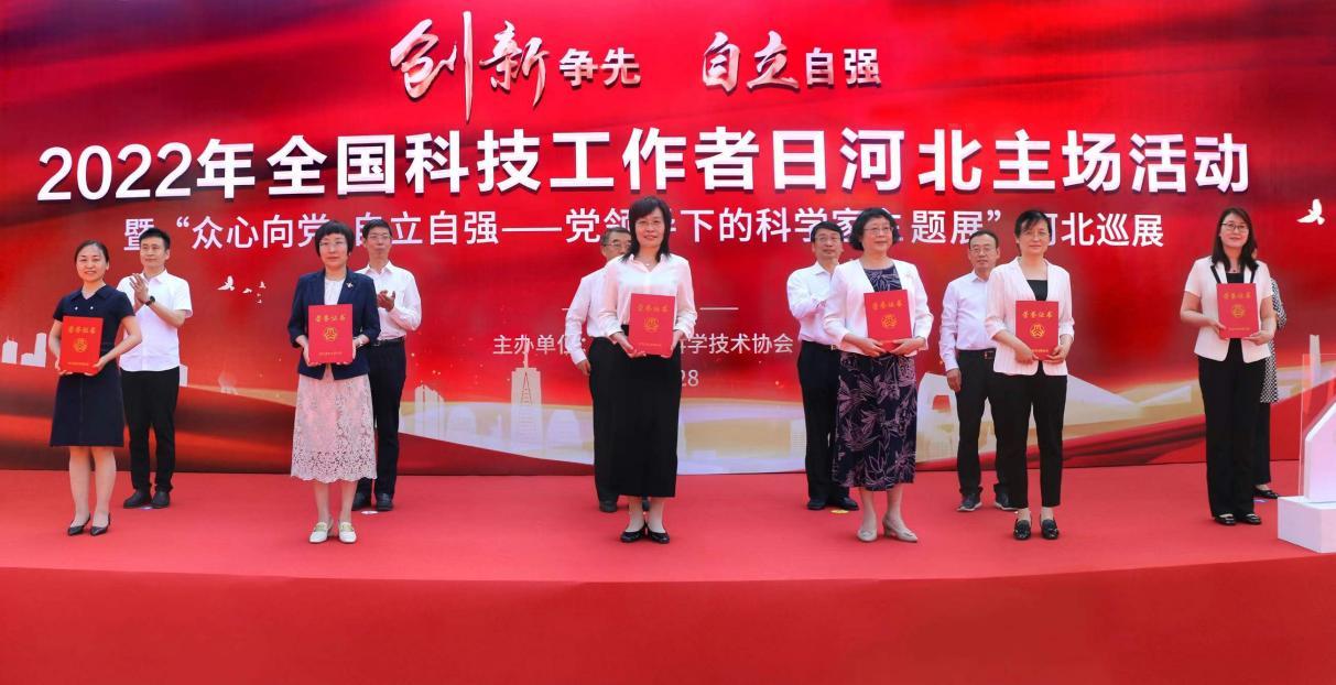 5月28日上午,2022年全国科技工作者日河北主场活动暨“众心向党,自立自强——党领导下的科学家主题展”河北巡展在石家庄举行,出席活动的领导为李英杰教授颁发了荣誉证书和奖章。