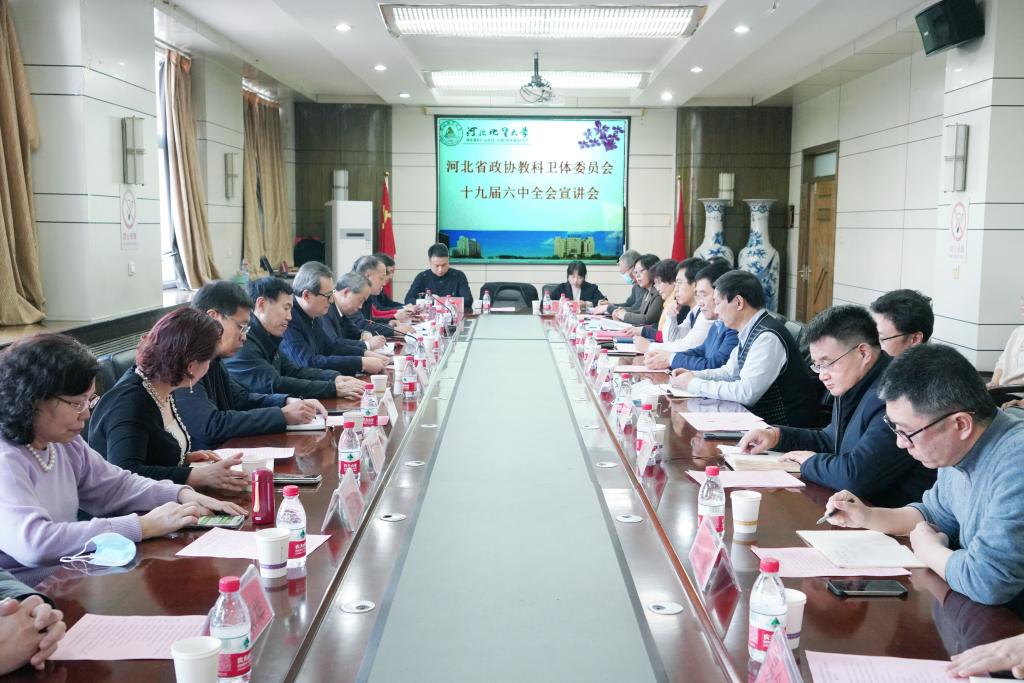 12月20日下午,河北省政协常委、教科卫体委员会主任栗建华一行来bat365官网作学习贯彻党的十九届六中全会精神宣讲报告。bat365官网省市人大代表、政协委员、民主党派负责人、统战部负责人参加了报告会。省政协教科卫体委员会二级巡视员尚根树主持报告会。