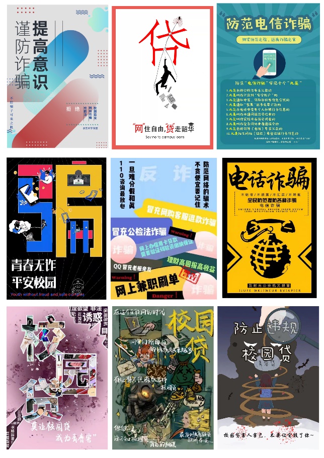 疫情防控、电信诈骗、校园贷等漫画海报作品