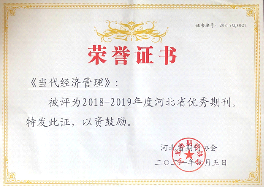 期刊《当代经济管理》获奖证书