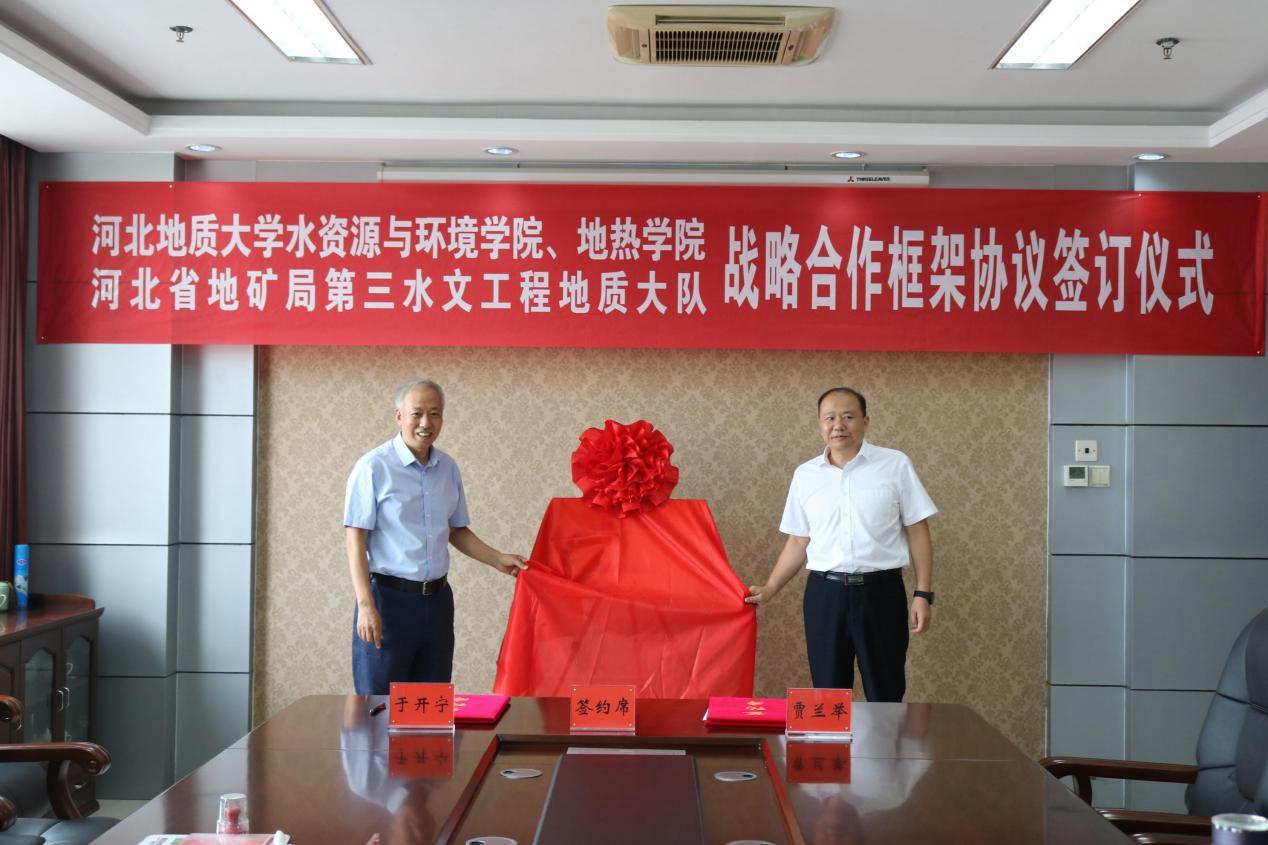 9月3日,bat365官网水资源与环境学院、地热学院与河北省地矿局第三水文工程地质大队合作座谈会暨战略合作框架协议签约仪式在衡水第三水文工程地质大队会议室举行。省地矿局总工程师刘志刚、二级巡视员田文法、地质矿产处处长魏明辉出席仪式。河北地矿局第三水文工程地质大队党委书记贾兰举、副书记张朝辉、总工程师苏永强,bat365官网水资源与环境学院院长于开宁、地热学院院长助理闫佰忠等参加会议。
