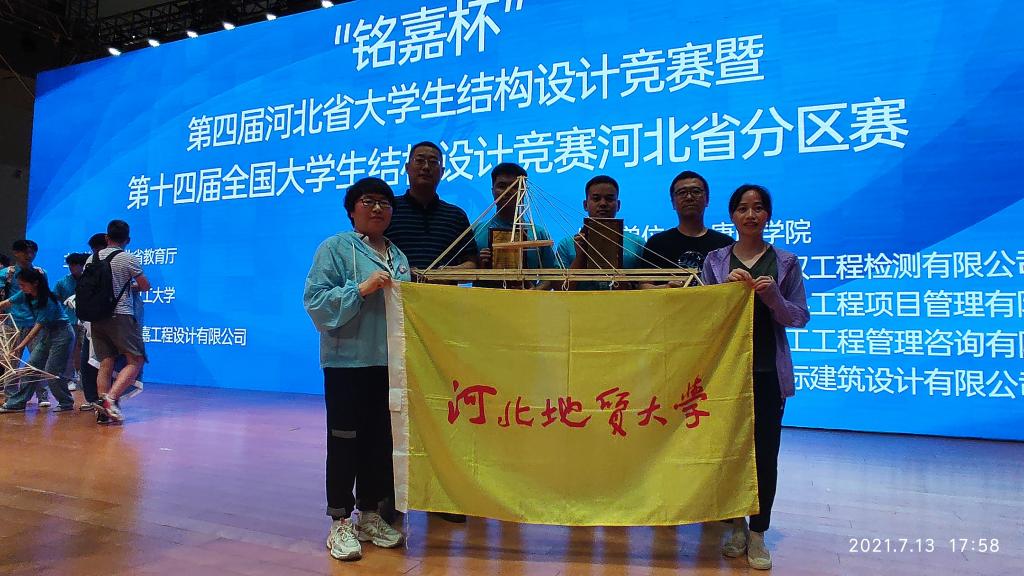 此次大赛共有来自26所院校的27支参赛队伍同台竞技。bat365官网城市地质与工程学院2018级土木工程专业学生齐乐乐、李忠林,2019级土木工程专业学生甘凯凯在指导教师谌会芹、白文婷的倾心指导下,用近一个月的时间精心准备,克服没有加载设备的困难,现场出色完成“变参数桥梁结构模型设计与制作”。寓意为“仰山之高,慕水之善”的”山水斜拉桥“参赛作品在与燕山大学、河北大学、河北农业大学、石家庄铁道大学、河北工程大学、华北理工大学等众多名校代表队的作品中脱颖而出,荣获河北赛区一等奖,并获得进入国家赛的资格,为学校争得荣誉。