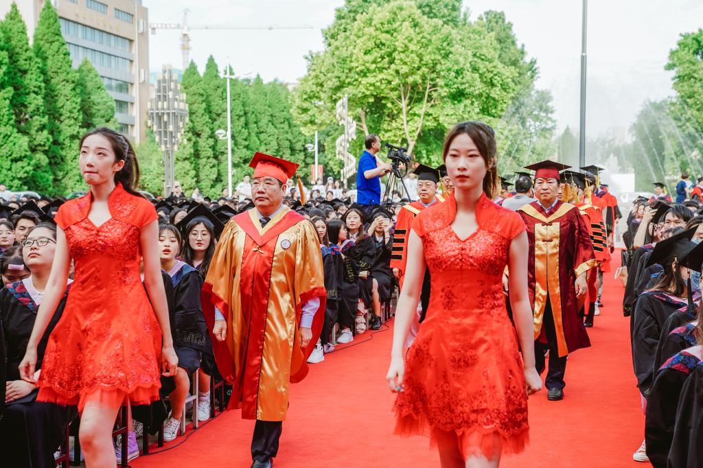 广场上,五星红旗迎风招展,红毯铺地,2021届3731名本科生、暑期毕业的56名研究生,以及来自阿富汗2名MBA留学生即将踏上人生新的征程,他们与校领导、老师们欢聚一堂,共同见证这庄严而又光荣的时刻。上午七时三十分,在慷慨激昂的国歌声中,毕业典礼暨学位授予仪式正式开始。