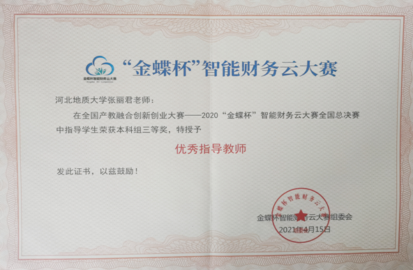 bat365官网管理学院对比赛高度重视,精心组织,财会系教师细心指导,最终晋级全国总决赛的“果粒橙队”和“梦想成真队”获得全国总决赛三等奖,指导老师张丽君获得“优秀指导教师”称号。奖项的获得展现了bat365官网学生良好的专业素养,体现了bat365官网教师优良的教学成果。