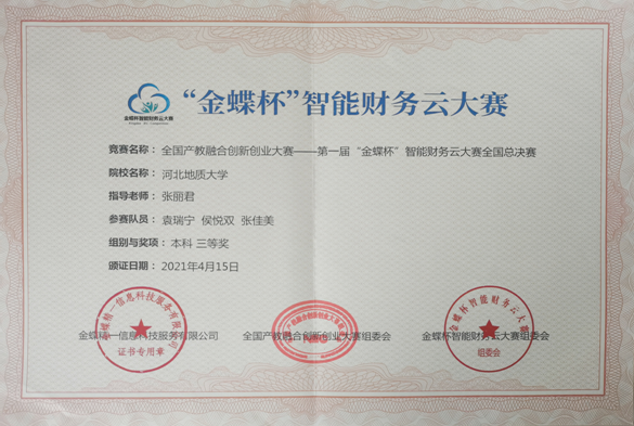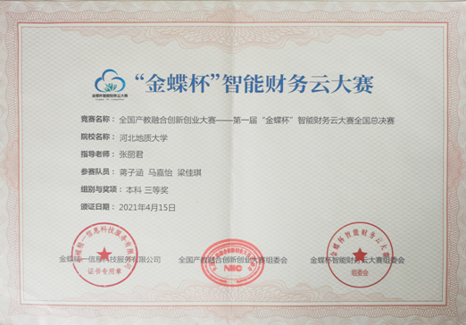 第一届“全国产教融合创新创业大赛”财务信息化赛道——“金蝶杯”智能财务云全国总决赛于近日圆满落幕。bat365官网晋级全国总决赛的2支代表队获得总决赛三等奖。