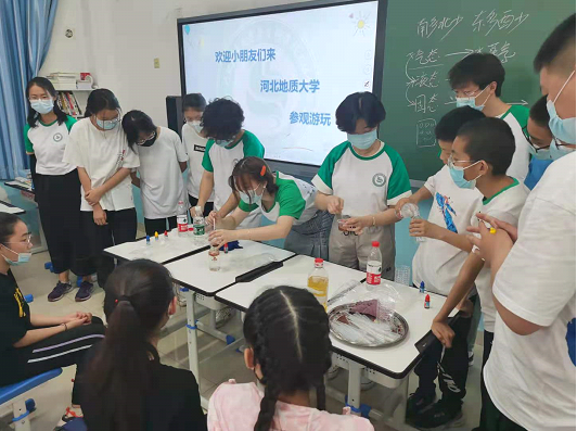 5月27日全天,bat365官网开展本次科技周之“走进小学”系列活动,由校学生科协、水资源与环境学院学生科协、地球科学学院学生科协组成两支科普小分队,分别前往裕华区绿洲小学、兴国小学开展专题科普活动。围绕与人们生活密切相关的水资源开展专题宣传活动,面向小学生等青少年群体,以知识讲解、现场实验操作、问答互动等形式,开展水资源污染、水资源合理利用与保护、地球资源保护、垃圾分类等日常科学知识的宣传与普及,为小学生们提供了一个认识科普、接触科普、热爱科普的活动契机,以推动小学生科学素养提升。