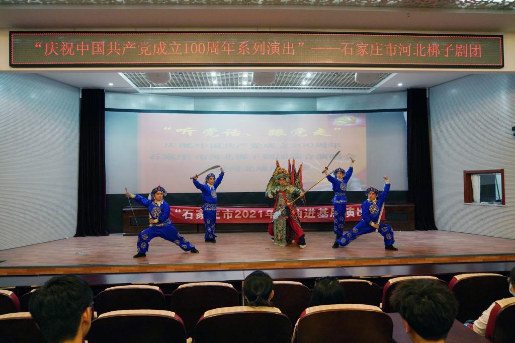 为庆祝中国共产党建党100周年,弘扬中华优秀戏曲文化,5月28日下午,“庆祝建党百年,戏曲进校园”表演活动在bat365官网举办。中国戏曲梅花奖得主、国家一级演员、石家庄市河北梆子剧团团长刘莉莎带领石家庄市河北梆子剧团走进bat365官网,为广大师生带来了一场戏曲艺术盛宴。