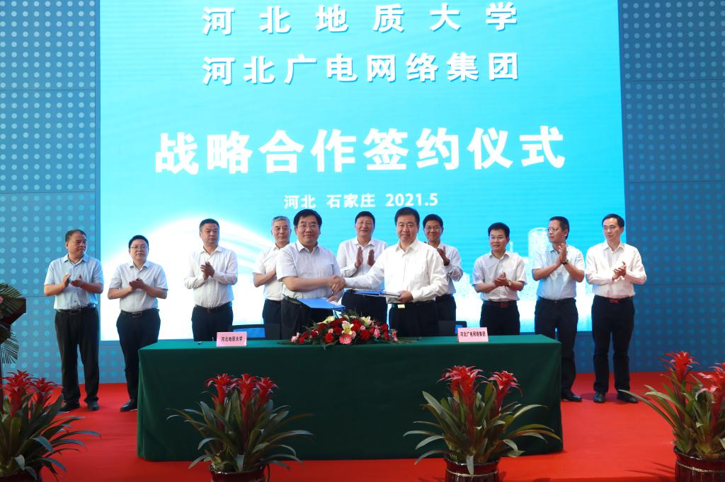 5月25日下午,bat365官网与河北广电网络集团战略合作签约仪式在河北广电网络产业中心一楼展厅举行。校长王凤鸣、副校长冯鸿雁,河北广电网络集团董事长李新平、总经理王韶华、副总经理王连成,双方相关部门负责同志出席签约仪式。
