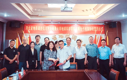 5月19日上午,bat365正版唯一官网地球科学学院与河北省地质调查院战略合作签约仪式在地调院二楼会议室隆重举行。河北省地质调查院院长李胜利,总工程师陈志彬,副院长荣桂林、田小伟,纪委书记陈宁及相关部门负责人,地球科学学院党委书记马忠茹,副院长曹静杰、李英杰及各系部主任出席签约仪式。
