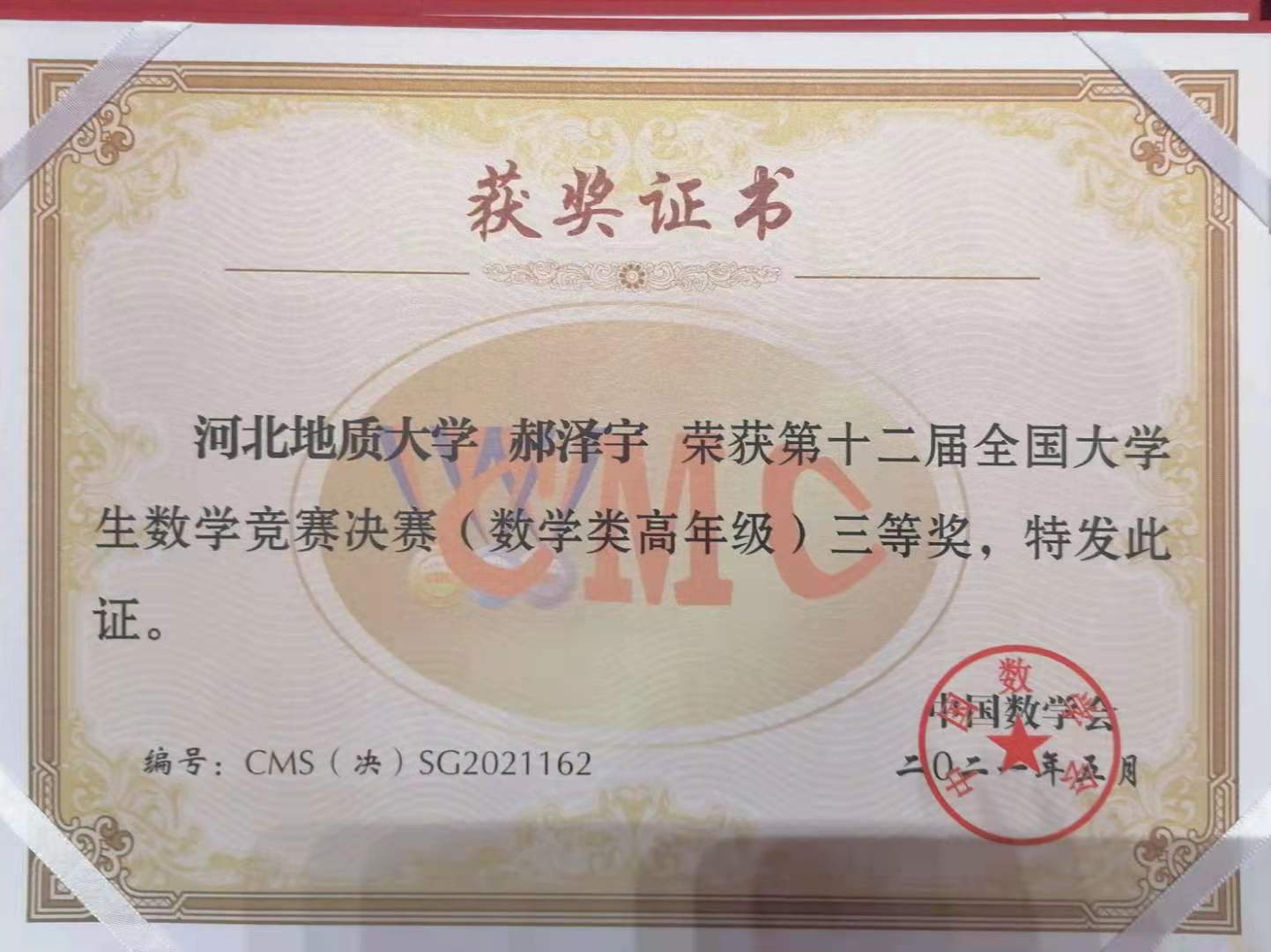据悉,全国大学生数学竞赛是由中国数学学会主办、面向本科学生的全国性高水平学科竞赛,旨在促进我国高等学校提高人才培养质量、促进数学课程建设与教学改革,激励学生学习数学的兴趣,发现和选拔数学创新人才,为青年学子提供一个展示数学能力的舞台。该竞赛已成为国内影响最大、参加人数最多的大学生学科竞赛之一。每届竞赛分赛区初赛和全国决赛两个阶段,本次决赛共有来自全国各省市的600名大学生参赛,其中河北赛区参赛学生24人。
