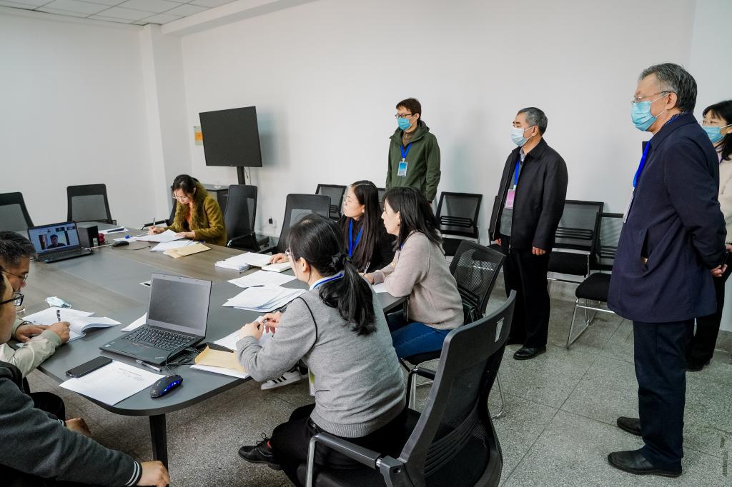 bat365官网2021年硕士研究生招生远程复试工作于3月19日正式启动。3月19日上午,校纪委书记蔡建章、副校长闫军印在研究生学院副院长段亚敏,研招办朱璐、贾子纯等陪同下,到各学院研究生复试考场进行督查巡视。