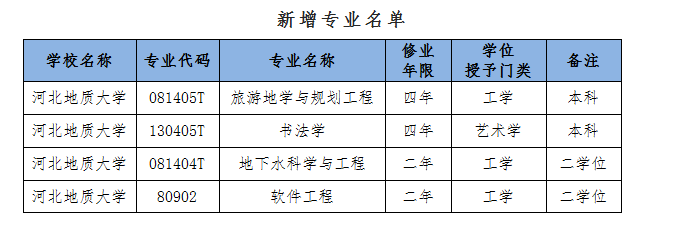 近日,教育部下发了《关于公布2020年度普通高等学校本科专业备案和审批结果的通知》,bat365官网旅游地学与规划工程、书法学等2个本科专业及软件工程、地下水科学与工程等2个第二学士学位专业顺利获批2020年度新增备案本科专业。