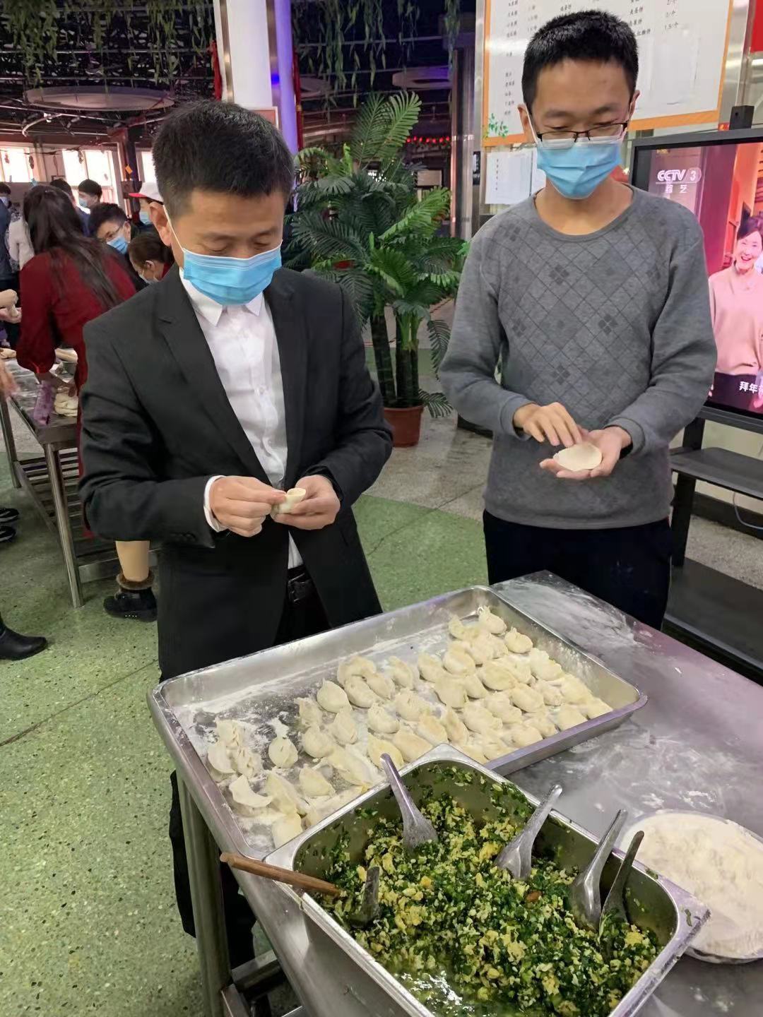 “爆竹声中一岁除,春风送暖入屠苏”。伴随着喜庆的音乐,校领导和老师们与学生步入餐厅,猜灯谜、包饺子、观春晚,丰富多彩的活动让同学们感受到了家的温暖和浓浓的年味。当热气腾腾的饺子和美味的菜肴上桌时,同学们通过视频等方式和远在他乡的父母共享新春祝福。期间,同学们还与校领导、老师们交流分享了各自的心得体会,现场气氛暖意融融。