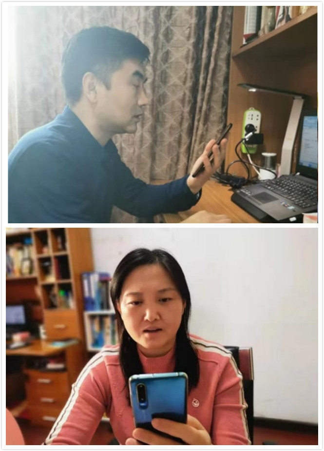 图:这是学生工作处田飞、管理学院陈伟娜老师运用专业知识和能力,通过微信、电话等形式,对隔离点人员进行一对一的心理疏导工作,有效缓解了隔离点和居家隔离群众的焦虑、不安等不良情绪,保障他们的身心健康。田老师和陈老师除了带队指导外,还负责10个隔离点人员近500人的一对一心理咨询工作。