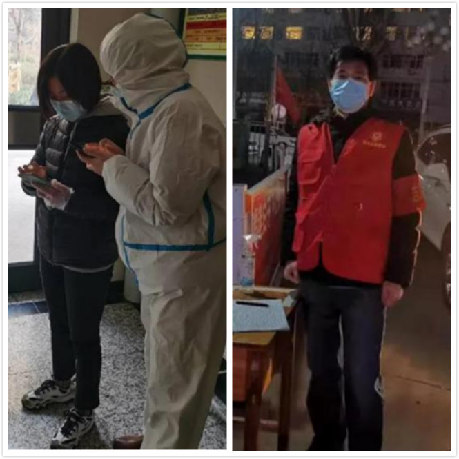 图:这是信息工程学院党员教师刘翠娟、赵战民参加志愿服务。刘翠娟在志愿服务中一个人承担一个单元居民的核酸检测信息核查和秩序疏导工作,在社区组织的6次检测工作中,所负责的68户206个居民没有一人漏检。她还积极给楼道早晚消毒,发布防疫政策,分享防治知识,用日常点滴服务群众;赵战民协助小区物业对出入小区人员进行检查登记,帮助困难老人解决生活困难,他们发挥了党员的先锋作用,诠释了志愿者的奉献互助精神。