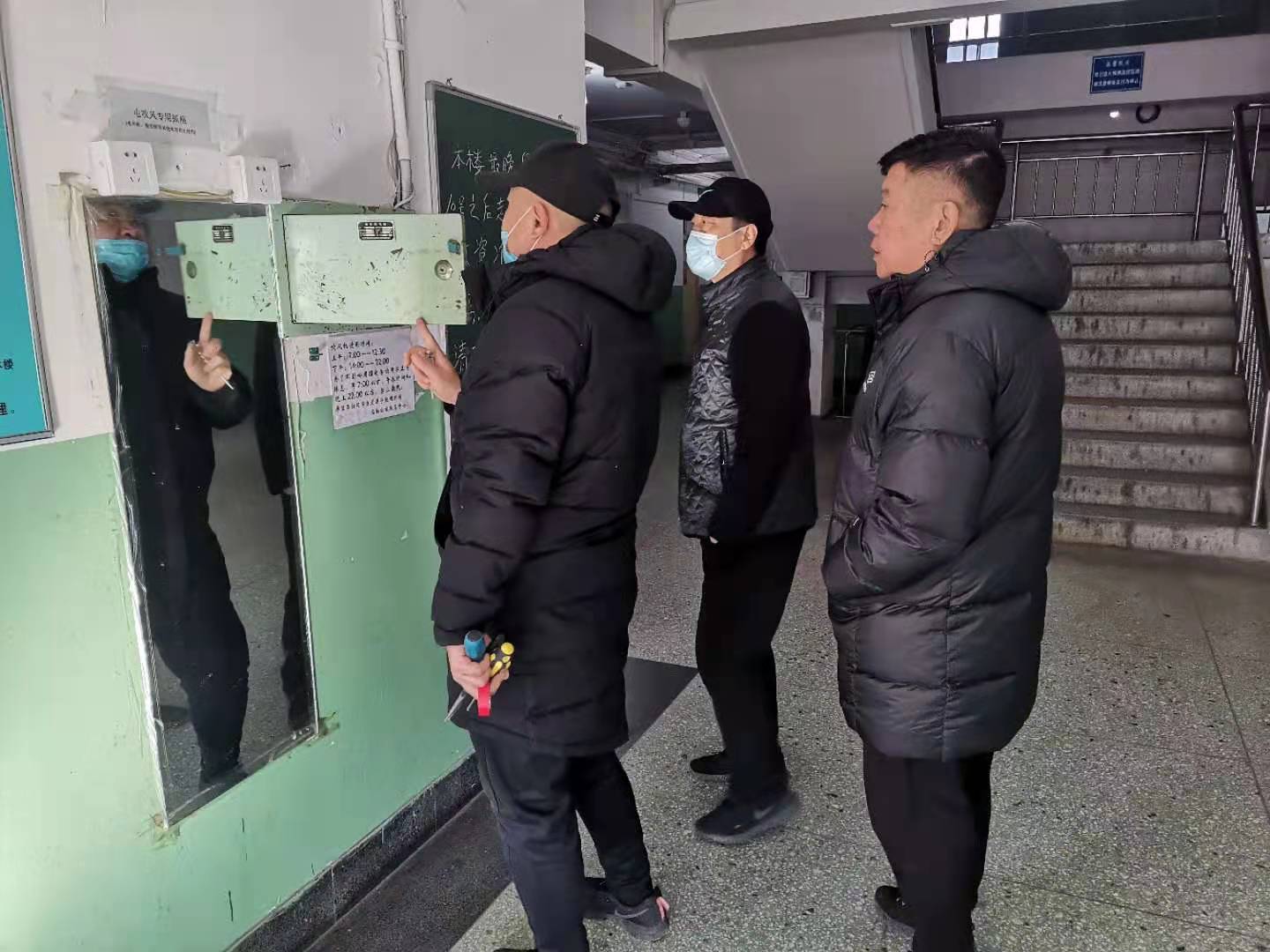 图:水电动力中心保障学校用水用电供暖正常运行。水电动力中心积极与承包商户沟通,为留校学生开放北院浴池,解决了疫情突发期间洗澡难的问题。