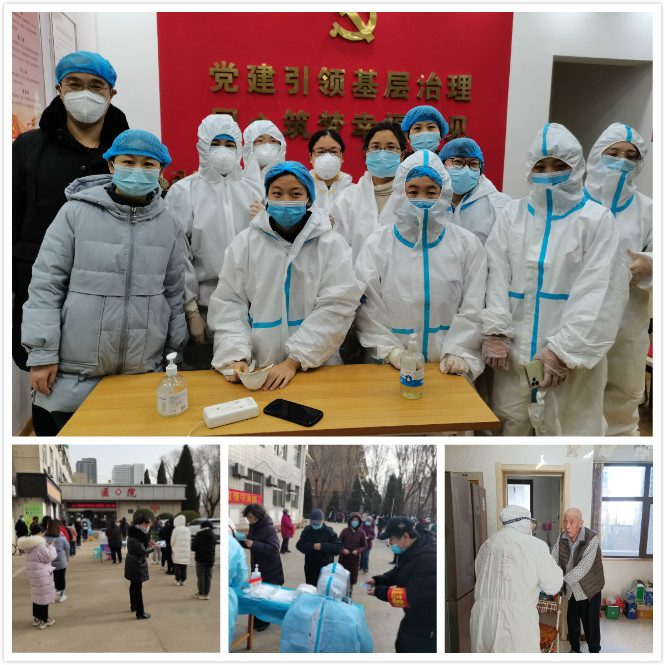 图:疫情爆发第一时间,按照辖区部署,校医院迅速组建了医护人员志愿队伍,舍小家顾大家,逆行奔赴社区核酸检测一线,日夜连续奋战,完成了对裕华区远见小区、城乡建设学校宿舍、测绘局宿舍、金马五区等社区核酸采样任务,受到居民一致好评。同时,组织北院居民和留校师生按期完成核酸检测工作。还有值班医生24小时的健康守护和科学规范的无死角消杀……