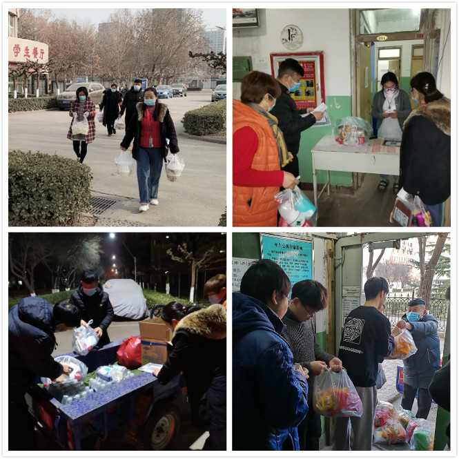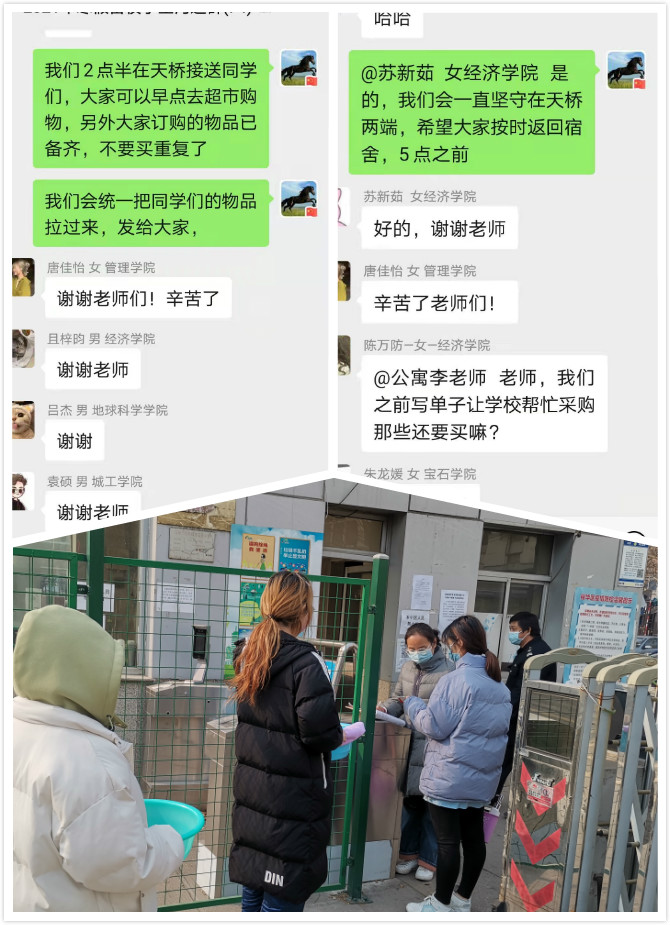 图:公寓管理中心急学生之所急,按照学校疫情防控工作部署,将留校男女生分别集中安排住宿,及时组建留校学生微信群,架起师生间沟通和理解的桥梁。学生在微信群中提出要取原宿舍的生活用品、学习书籍、超市购物、领取快递等等,中心主任李克义带领全员出动,无论外面的天气多么寒冷,风吹的多猛,时间多晚,他们都会在第一时间满足学生的需求,帮学生搬运行李、送餐到宿舍、集中代购生活用品,用爱心温暖孩子们。