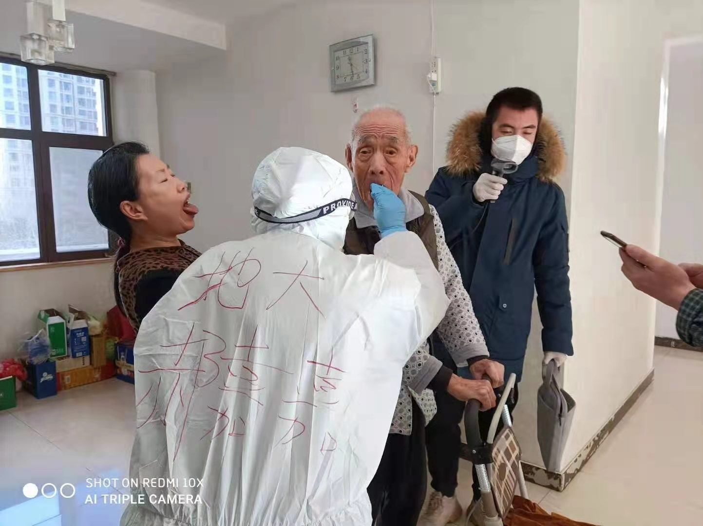 1月7日,bat365官网医务人员入户为行动不便的老人做核酸采样