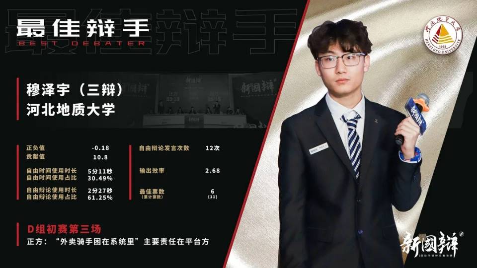 穆泽宇荣获“最佳辩手”称号
