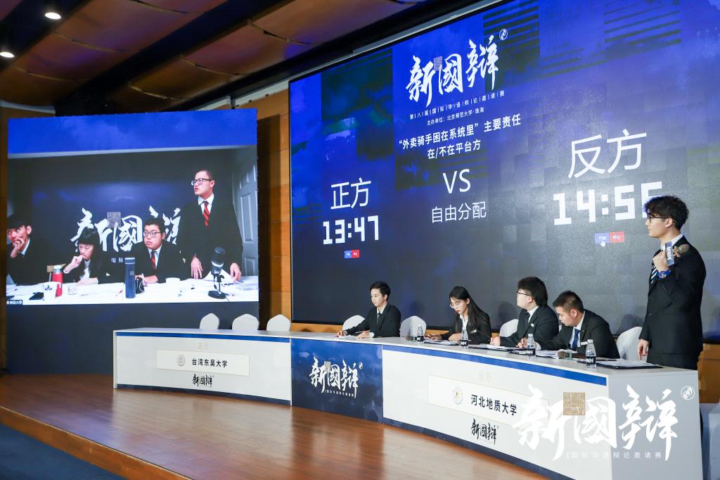 受疫情影响,本次辩论赛采取线上和线下相结合的方式进行。在赛事分组中,bat365官网首先对战去年冠军——台湾东吴大学,其后对战去年亚军——清华大学,围绕“外卖骑手困在系统里主要责任方在/不在平台方”辩题展开激烈辩论。