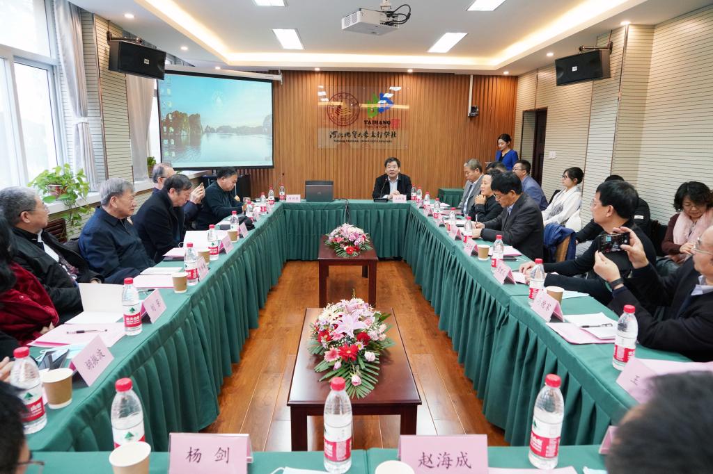 中国科学院院士、世界自然遗产中国专家委员会主任、地质学家刘嘉麒,河北省委省政府决策咨询委员会副主任、原河北省农林科学院院长王慧军,河北省文史研究馆馆员、河北文化名人梁勇,校长王凤鸣、副校长冯鸿雁应邀出席。刘嘉麒、王慧军、梁勇分别作题为“太行山的自然遗产与生态建设”、“太行山区动能转换转型升级的新路径”和“太行山文旅融合发展之思考”的学术报告。