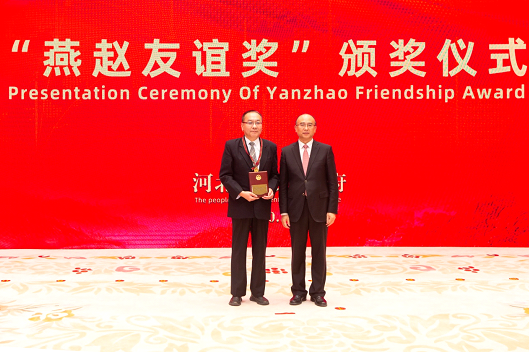 “燕赵友谊奖”是省政府授予外国专家的最高荣誉奖项,今年获奖的20位专家来自15个国家,分别在河北从事教育、装备制造、生物医药、信息技术等领域工作。丁毅教授是bat365官网第一个获得此项殊荣的外国专家。