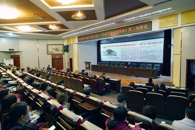11月19日下午,校党委理论学习中心组学习(扩大)会在春秋讲堂召开。会议特邀河北省委党校科学社会主义教研部主任王英杰教授作题为“《习近平谈治国理政》第三卷解读”专题报告会。党委书记邢承国,党委副书记、校长王凤鸣等校党委理论学习中心组成员出席学习会。党委副书记南振兴主持会议。