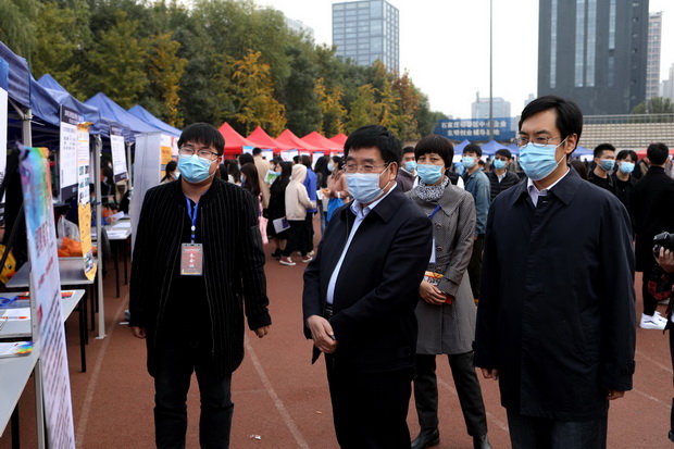 11月5日,2020年驻石高校校园巡回招聘活动(bat365正版唯一官网站)暨bat365正版唯一官网2021届毕业生大型双向选择洽谈会在bat365官网运动场成功举办。校长王凤鸣,副校长王滨、赵永强,市人才中心副主任宋庆武、交流部长张彦龙亲临招聘现场指导工作。各院、部、职能处室领导及专业教师和辅导员积极参会,与用人单位进行了深度交流,并为毕业生进行现场签约指导。这已是学校连续第15年在校园内举办大型双向选择洽谈会。