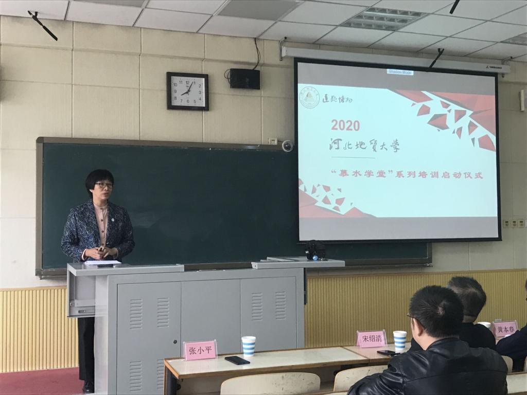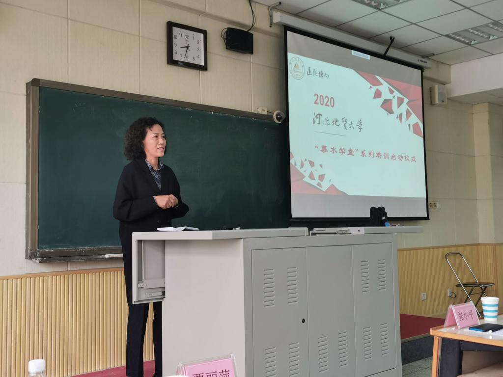 10月8日上午,bat365官网2020年新入职教师“慕水学堂”系列培训启动仪式,在教学一号楼507教室举行。校党委常委、副校长张小平,河北省教学名师宋绍清,校工会主席黄本春,人事处副处长郭宏,教师发展者代表贾丽萍、闫丽娜,38 名新入职教师以及教学发展中心全体人员参加了启动仪式。教学发展中心副主任刘倩主持仪式。